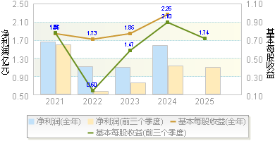 | 基本每股收益 | 0.8300 | 0.2800 | 2.1900 | 1.5500 | 1.1300 |