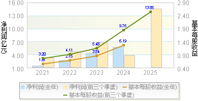 东鹏饮料2025年三季实现基本每股收益2.6657元,比上年同期增长202.92%。