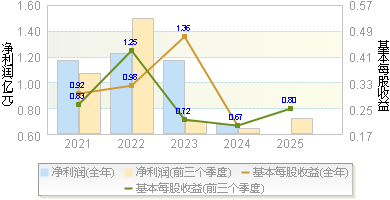 | 基本每股收益 | 0.5500 | 0.3300 | 0.1700 | 0.7300 | 0.5300 |