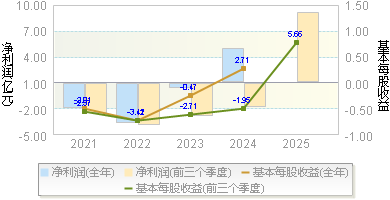 | 基本每股收益 | 3.8500 | 2.5000 | 0.8500 | -1.0900 | -1.7400 |
