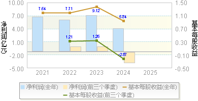 | 基本每股收益 | 1.2100 | 0.4500 | 1.5400 | 0.8200 | 1.1600 |