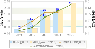 | 基本每股收益 | 1.0700 | 0.5800 | 0.2400 | 1.2900 | 0.9100 |