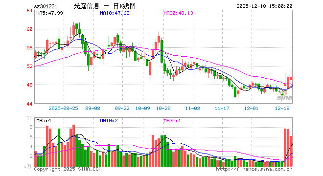 10月8日,光庭信息开盘涨16.99%,报59.55元。