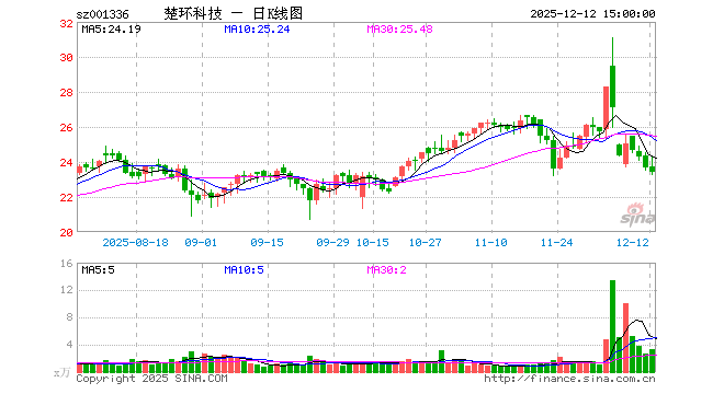 10月8日,楚环科技开盘涨9.73%,报20.52元。