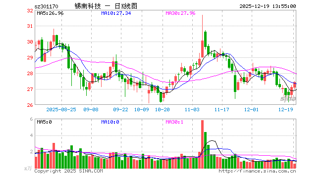7月4日,锡南科技开盘跌3.18%,报39.6元。所属汽车零部件行业,开盘跌幅0%。