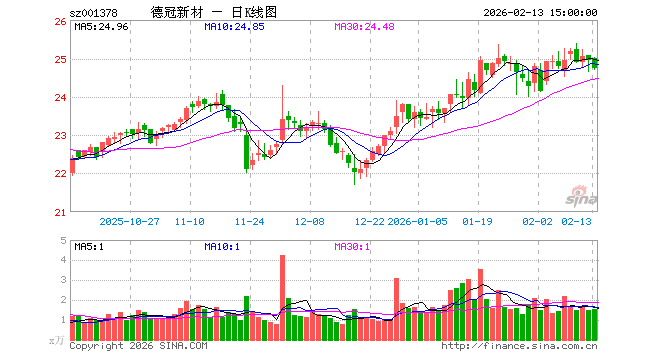 德冠新材收于24.630元,涨幅8.98%,成交金额1.0165亿元,换手率13.09%。