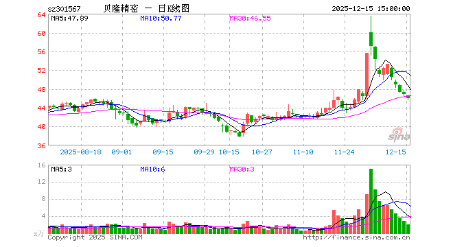 9月30日,贝隆精密开盘涨3.72%,报45.16元。