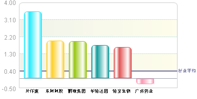 广济药业 每股收益在行业内名列第70 ,弱于行业平均