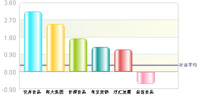 益客食品 每股收益在行业内名列第44 ,弱于行业平均
