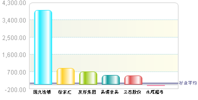 永辉超市 流通市值(亿)在行业内名列第2 ,强于行业平均