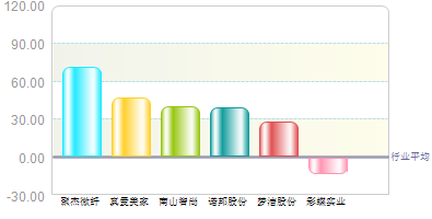彩蝶实业 1年涨跌幅在行业内名列第30 ,弱于行业平均,强于上证指数
