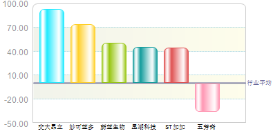 市场表现五芳斋 1年涨跌幅在行业内名列第71 ,弱于行业平均,弱于上证指数