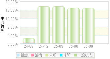 截至2025-09-30,共9家主力机构(一般法人9家)持有长江材料,持仓量总计0.25亿股,占流通A股16.59。