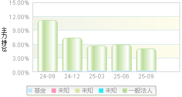 截至2025-09-30,共10家主力机构(基金1家,一般法人9家)持有挖金客,持仓量总计0.05亿股,占流通A股4.98。