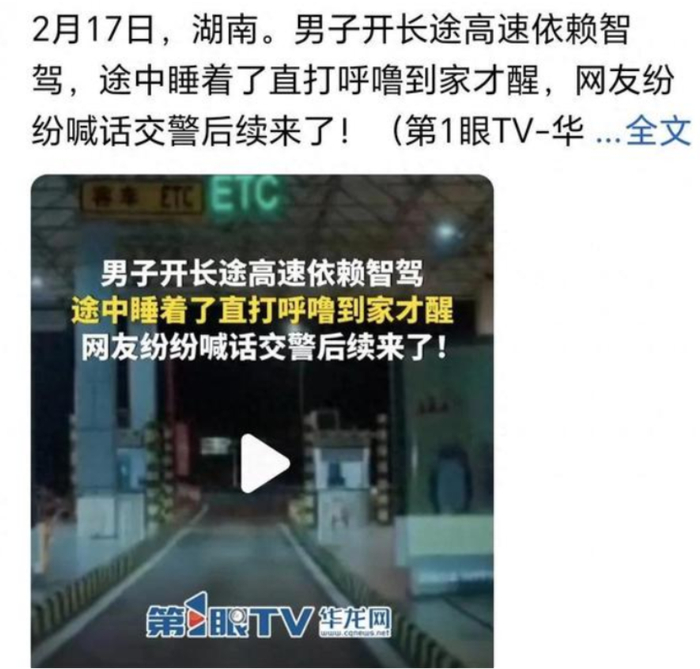 风云君身边用过的人普遍表示:再也“回不去”了!甚至有朋友全部行驶里程中超过9成都是智驾完成的!风云君印象最深的舆论事件,是2025年2月有人开着问界M9一边在车里打鼾、一边车辆自行通过ETC闸机送他回家。