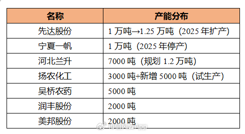 目前,先达股份是全球最大的烯草酮生产商,产能大约1.25万吨/年。截至2024年底,全球烯草酮产能大约4.6万吨/年,主要都在国内。