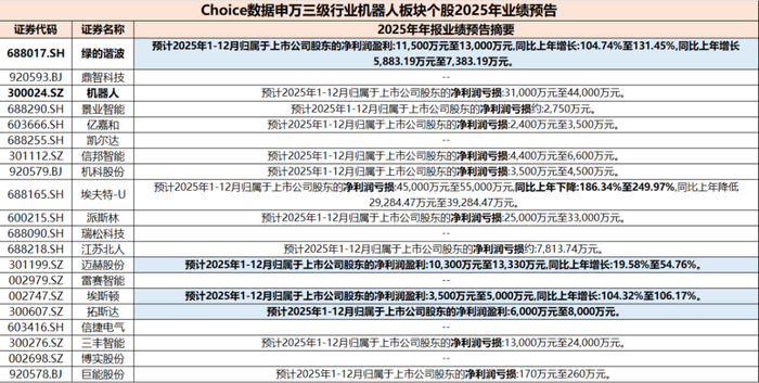 上述20家公司中,有14家发布了2025年的业绩预告,而实现盈利的仅有4家。像公募基金持仓比例超8%的机器人,2025年的业绩同样不及预期,预计亏损3.1亿-4.4亿。