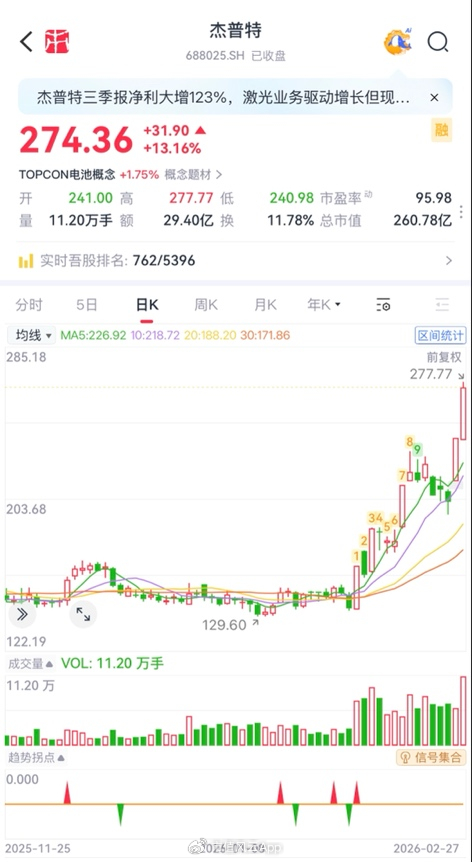 多重因素催化下,杰普特截至2月末股价已涨超90%,表现亮眼。
