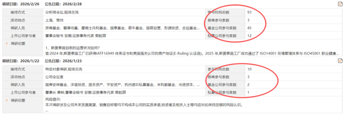 其中,机构对斯菱智驱的青睐,并未止步于四季度,当季公募继续增持超7个百分点后,2026年开年再迎多家机构密集调研。