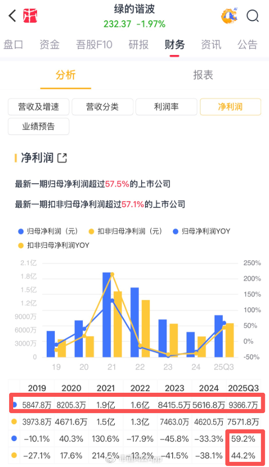 作为谐波减速器全球龙头,绿的谐波的韧性在于:即便中间经历业绩增速放缓,仍能连续多年保持盈利。2025年归母净利润预计为1.15亿-1.3亿,同比增长104.7%-131.4%。