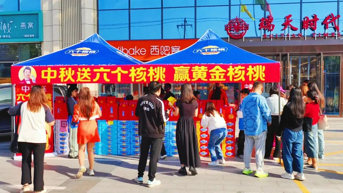 在促销方面,六个核桃也是别出心裁,譬如围绕国庆中秋这样的重要节日,今年六个核桃送“六六大顺”礼金、“送黄金核桃”活动,100%的中奖,通过扫码领红包的方式,将消费者变成会员,触达更多年轻群体,了解用户的需求,增强他们的粘性,从而成功实现品牌与消费者双向奔赴。