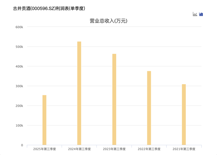 以酒鬼酒为例,从2022年第四季度开始,单季度营收持续同比下滑至2025年第二季度,持续下滑时间长达十一个季度。