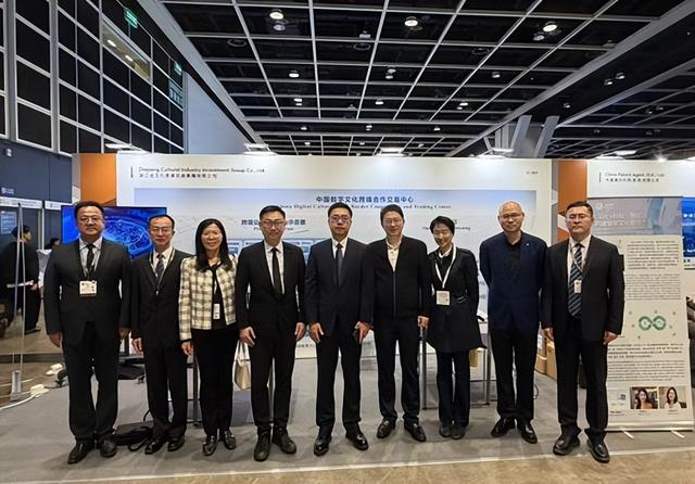 国家知识产权局专利局副局长李胜军(居中)、浙江省文投集团党委副书记、董事钱志富(右四)、香港贸易发展局中国内地总代表钟永喜(左四)