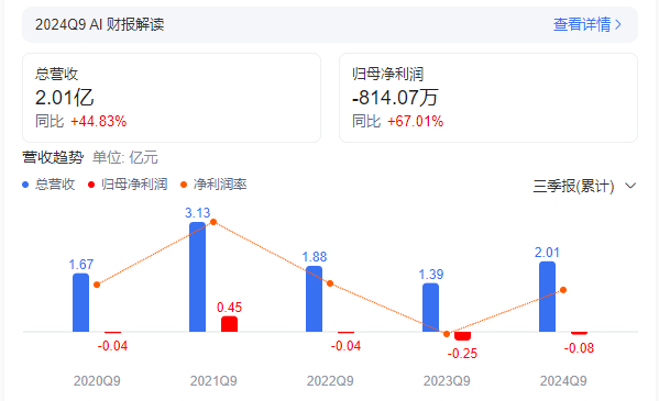 最新的财报显示,2024年前三季度,在总营收同比大涨44.8%的情况下,依然还有814万的亏损。目前四通股份股价在6元/股左右,市值仅19.5亿。