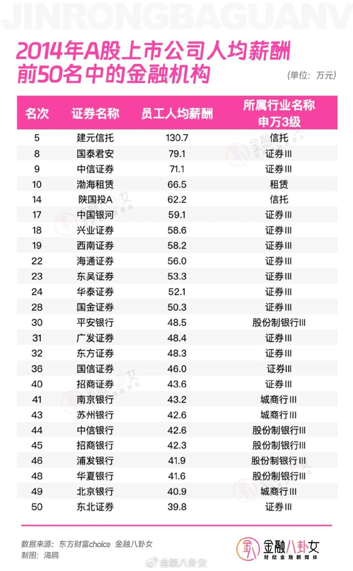 早在2014年开始,安信信托(现在叫建元信托)就是上市金融公司中,人均薪酬率先超过百万的,遥遥领先。在那时候,安信信托在金融圈内号称“最令人羡慕的offer”。这A股市场的最高薪酬,是怎样炼成的?