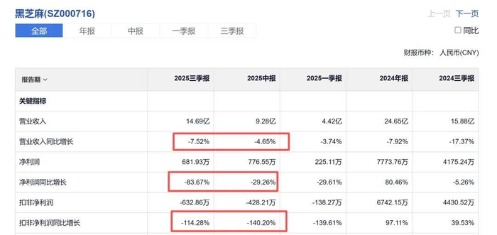 如果翻开南方黑芝麻的上市公司-黑芝麻的业绩报告,或许就能明白南方黑芝麻为何沦落到如此地步了。