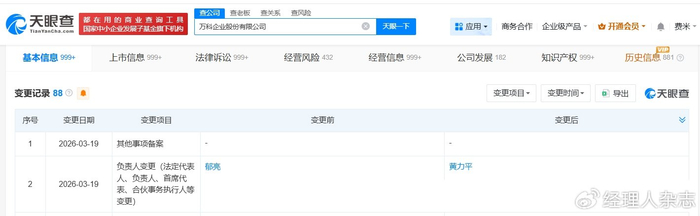 近日,天眼查App显示,万科A(000002)完成工商变更,郁亮卸任法定代表人,黄力平正式接任,这一变动为这家深耕地产行业四十余年的龙头企业,画上了一段时代的句点,也开启了国资主导下的全新发展篇章。从郁亮36年的坚守到黄力平的临危受命,万科的掌舵人交替,不仅是企业治理的正常迭代,更折射出中国房地产行业从高速增长到高质量发展的深刻转型。