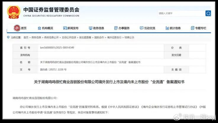 12月11日,中国证监会向湖南鸣鸣很忙商业连锁股份有限公司(以下简称鸣鸣很忙)出具了备案通知书,标志着公司赴港交所上市取得关键性进展。