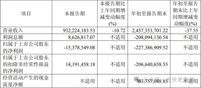 据第一财经报道,其统计21家光伏主产业链上市公司后发现,前三季度营收总额同比下滑17.05%,超半数企业第三季度营收环比降幅超过10%。