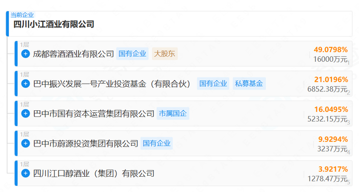 小江酒业股权结构,图源企查查在这场专场活动中,市场最关心的莫过于当国资入局以后,江口醇、小角楼未来的发展将何去何从。
