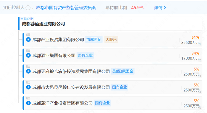 成都蓉酒股权结构,图源企查查2025年12月,市场传出成都蓉酒将收购小角楼的消息。