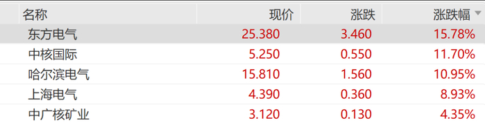 港股方面,午后电力、核电板块领涨。截至发稿,东方电气涨超15%,中核国际涨超11%,哈尔滨电气涨超10%。保险板块午后涨幅也在扩大,截至发稿,中国人寿和中国太保涨4%,中国平安涨近3%。