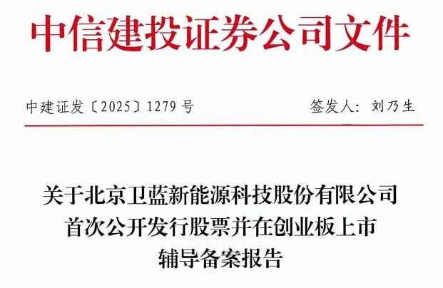 12月11日,中国证券监督管理委员会网上办事服务平台显示,北京卫蓝新能源科技股份有限公司(下称卫蓝新能源)已与中信建投证券签署上市辅导协议,正式启动A股创业板IPO进程。