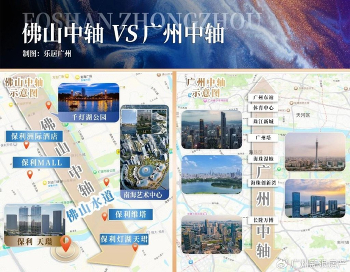 纵观全球都会,中轴所在,即是价值所向。正如北京中轴承载千年文脉,广州花城广场成就珠江新城核心,佛山千灯湖中轴亦以“佛山版花城广场”为蓝图,通过南海艺术中心、三大场馆(博物馆、会展中心、体育中心)等地标集群,兑现着城市级资源的极致集聚。