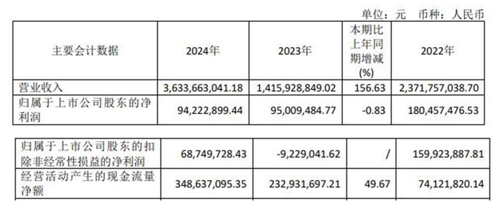 2020年至2024年,长鸿高科实现归属于上市公司股东的净利润分别为3.02亿元、1.85亿元、1.80亿元、9500.95万元、9422.29万元。