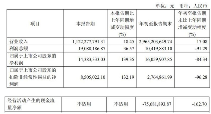 中国经济网北京11月7日讯 长鸿高科(605008.SH)近日披露的2025年第三季度报告显示,今年前三季度,公司实现营业收入29.65亿元,同比增长17.08%;归属于上市公司股东的净利润1605.99万元,同比下降84.34%;归属于上市公司股东的扣除非经常性损益的净利润276.49万元,同比下降96.28%;经营活动产生的现金流量净额为-7568.19万元,上年同期为1.21亿元。