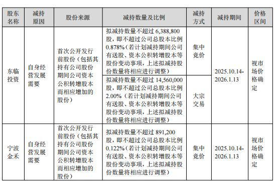 公司9月13日披露关于股东减持股份预披露公告称,公司于近日收到公司控股股东上海东临投资发展有限公司(简称“东临投资”)及控股股东、实际控制人的一致行动人宁波金禾企业管理咨询有限公司(简称“宁波金禾”)出具的股份减持计划告知函。