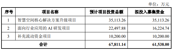 金桥信息于11月25日发布的《2025年度向特定对象发行A股股票预案(修订稿)》显示,本次向特定对象发行募集资金总额不超过61,538.00万元,公司在扣除发行费用后将用于下述项目:智慧空间核心解决方案升级项目、面向行业应用的AI研发项目、补充流动资金项目。