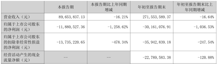 中国经济网北京12月14日讯 拓新药业(301089.SZ)近日披露2025年第三季度报告。前三季度公司实现营业收入2.72亿元,同比下降16.64%;归属于上市公司股东的净利润为-3016.11万元,上年同期为-265.38万元;归属于上市公司股东的扣非净利润为-3594.28万元,上年同期为-1034.19万元;经营活动产生的现金流量净额为-2278.96万元,上年同期为1.09亿元。