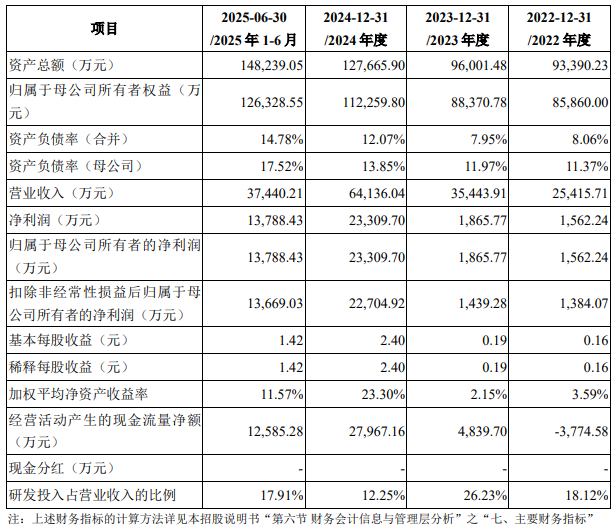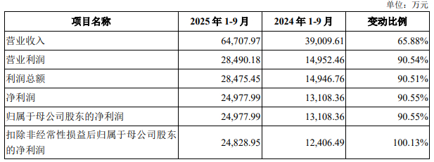 2025年1至9月,强一股份营业收入64,707.97万元,净利润/归属于母公司股东的净利润24,977.99万元,扣除非经常性损益后归属于母公司股东的净利润24,828.95万元,经营活动产生的现金流量净额为22,642.14万元。