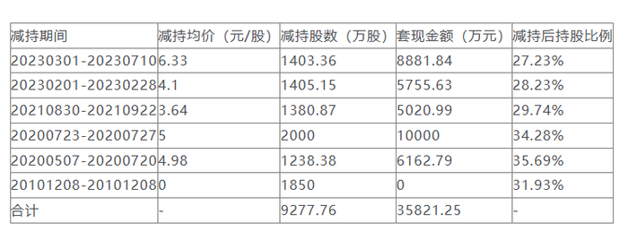 新浪财经数据显示,永鼎集团最初持股6800万股,占总股本的50.37%。永鼎集团从2010年12月8日起,第一次减持永鼎股份股份,至2023年7月10日,累计减持公司股票9277.76万股,累计套现约3.58亿元。