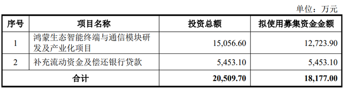 九联科技3月13日披露《2025年以简易程序向特定对象发行股票证券募集说明书(申报稿)》显示,公司本次发行募集资金总额不超过人民币18,177.00万元,用于鸿蒙生态智能终端与通信模块研发及产业化项目、补充流动资金及偿还银行贷款。