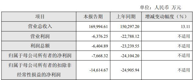 据公司2025年度业绩快报公告,2025年度,公司实现营业收入169,994.61万元,同比增加13.11%;实现归属于母公司所有者的净利润-7,668.32万元,同比减亏68.19%;实现归属于母公司所有者的扣除非经常性损益的净利润-14,614.67万元,同比减亏41.32%。