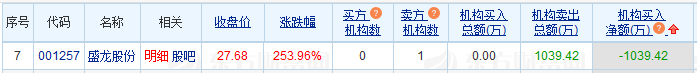 盛龙股份龙虎榜:1家机构进卖出前5 净卖出共1039万元