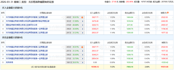 龙虎榜数据显示,卖出盛龙股份金额最大的前5名中,1家为机构专用席位。经统计,机构席位今日卖出盛龙股份净额为1039.42万元。