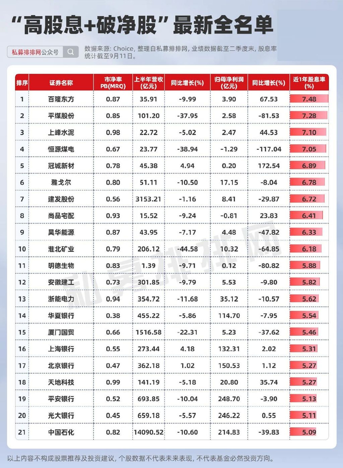 股息率5%以上!21只“破净+高股息”名单曝光!